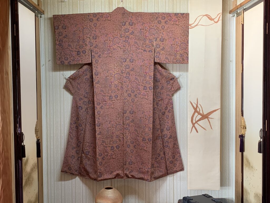 秋らしい色のお着物と、草木染の帯を飾ってみました。