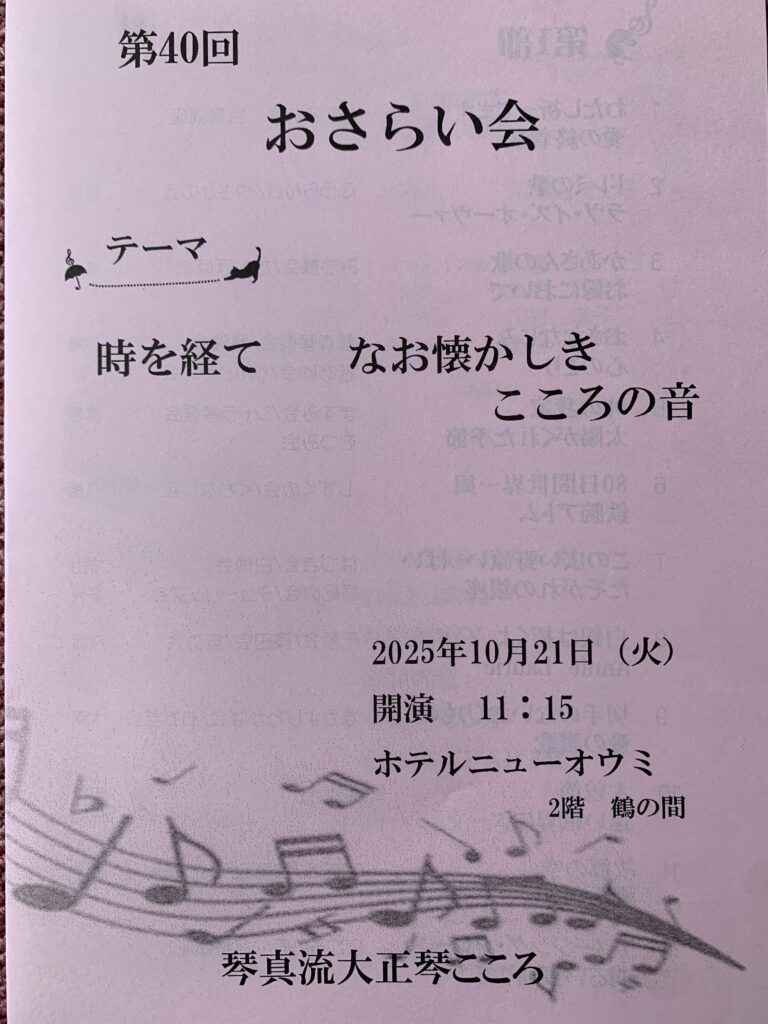 『第40回 おさらい会』が、明日、10月21日(火) ホテルニューオウミにて開催します。