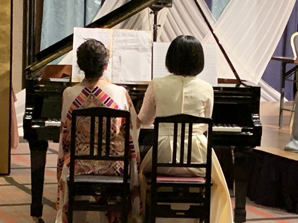 奥村先生と、今回、司会もお願いした原千代子先生によるピアノの連弾。「カーペンターズのメドレー」誰もが耳にしたことがあるであろう曲のメドレーで、とても楽しく聴かせていただきました。