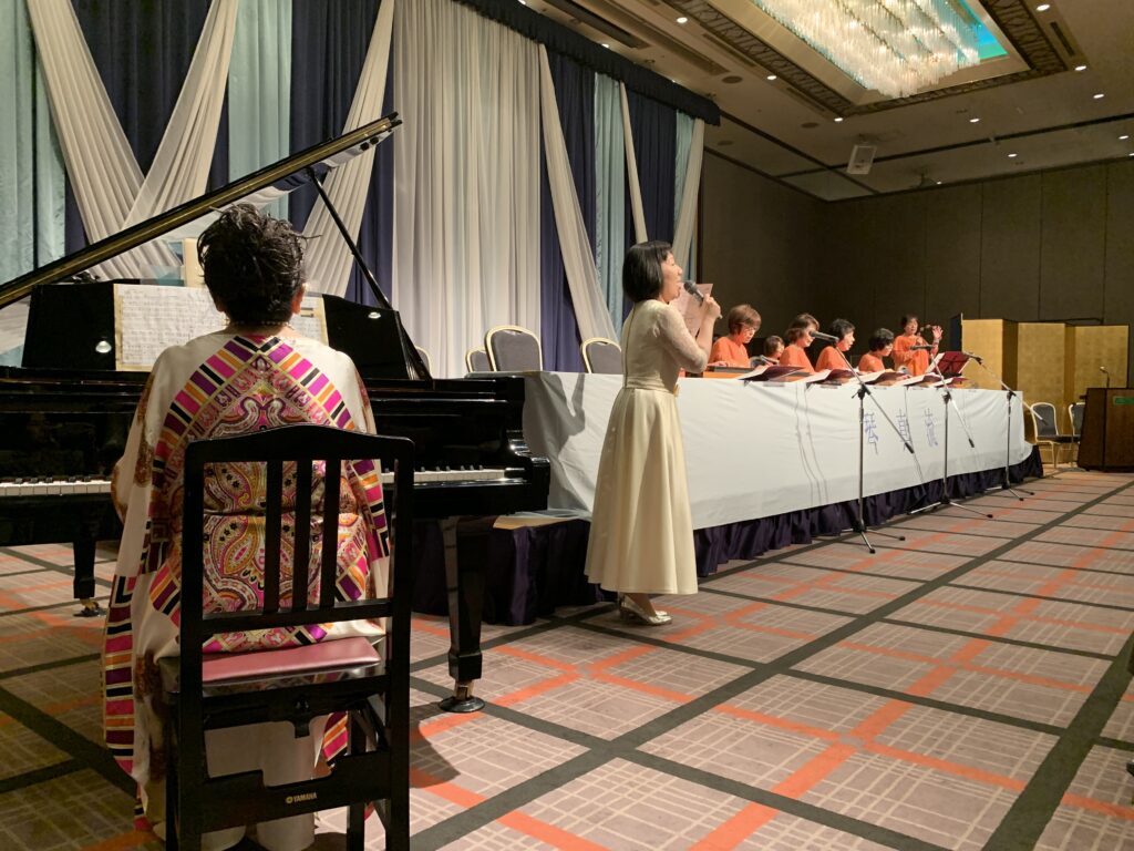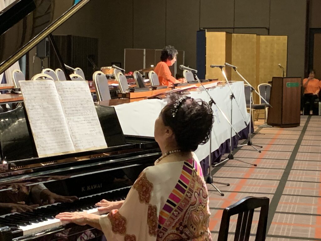 琴真流大正琴の楽譜を編曲してくださっている奥村睦子先生のピアノも加わっていただき、「お久しぶりね」「MEMORY」を演奏。大正琴のみの音色とはまた違って、素敵な音色でした。